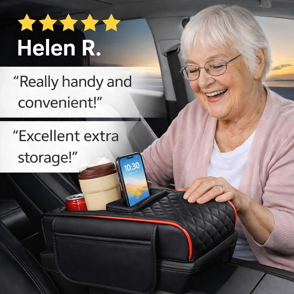 "This armrest organizer has completely transformed my driving experience. Everything is now within reach, my arm is comfortable, and my car actually stays organized! I recommend it to everyone I know who drives."