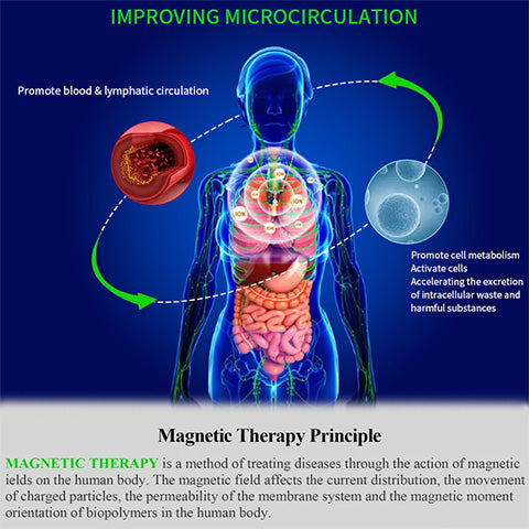 Magnetic therapy re-regulates the electromagnetic charges in the body's cells, promotes self-healing, boosts blood circulation and helps relieve stiffness, which is helpful for the circulation of the lymphatic system. The magnetic field heals by alkalizing the tissue and returning oxygen from the bound state to the molecular state. It can also reduce the swelling of lymph nodes, promote cell metabolism, rejuvenate cells, accelerate the excretion of intracellular waste and harmful substances and accelerate tissue repair.