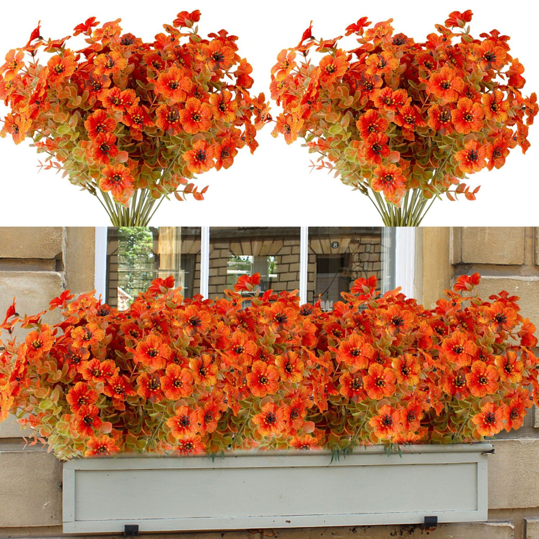 🌸 【Full Size & High Quality】Outdoor artificial flowers, 18cm  W x 37cm L, each bush has 5 flexible stems and generous leaves.